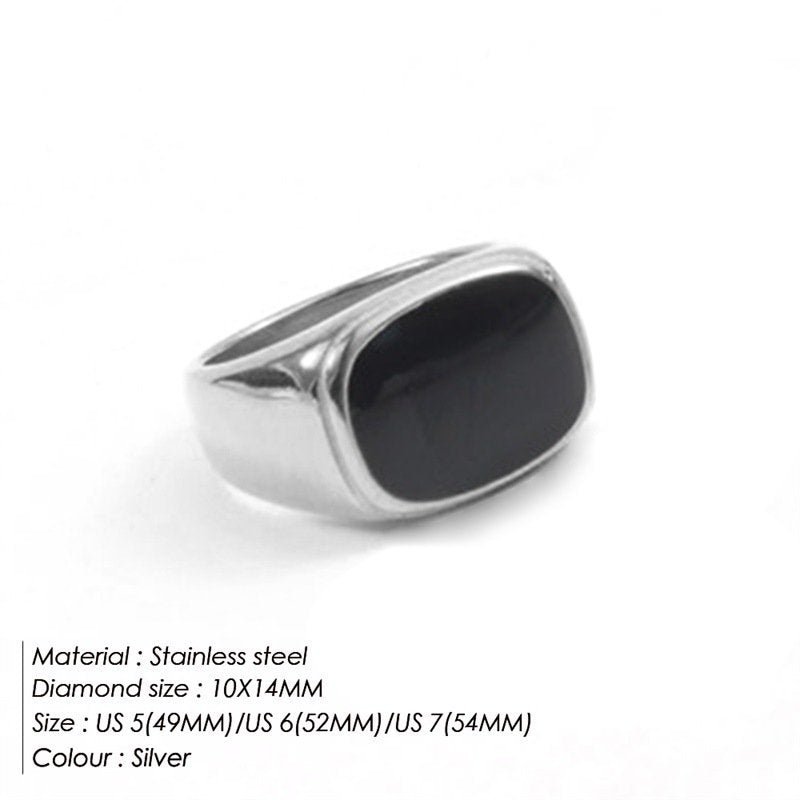 Classic Silver Signet Ring with Black Onyx Inlay