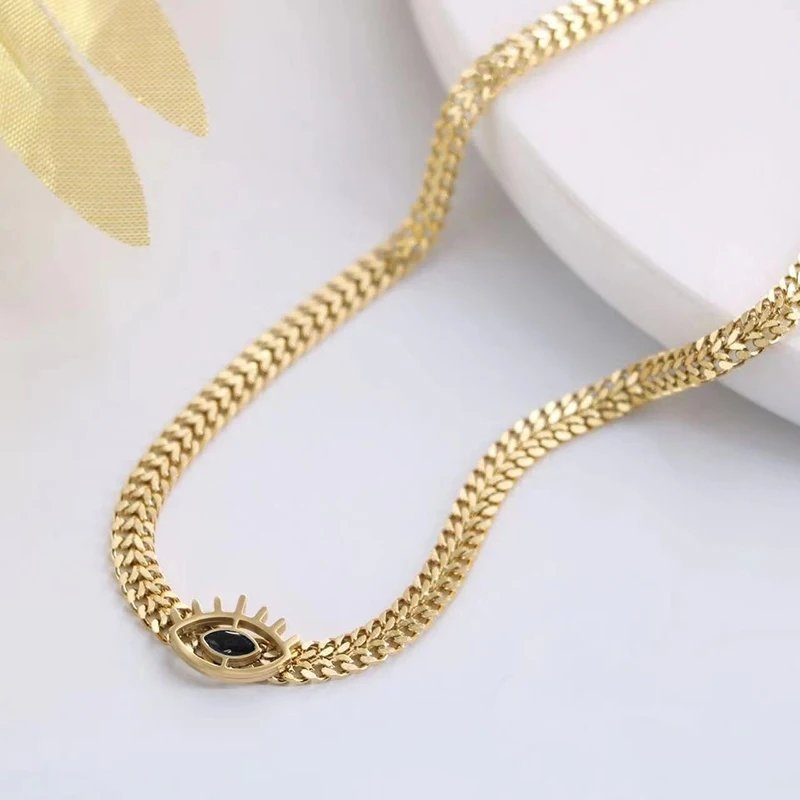 Vintage Eye Shaped Gold Plated Necklace